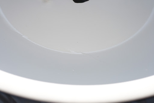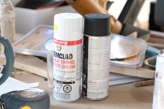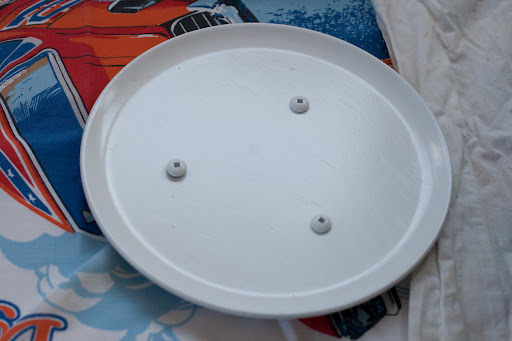 We took everything apart, sanded down both dishes to make the paint stick, and painted the pizza dish and inside of the bowl with white aerosol paint.