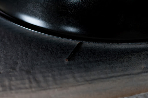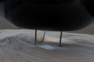 | after the black side was coated, I used the bolts and nuts to keep the dish off the table to dry |