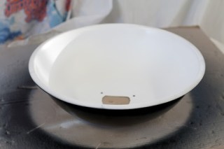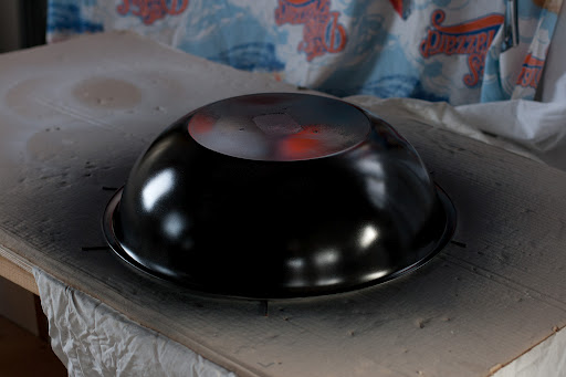 After the white was finished drying, we flipped the main dish over and sprayed the back side with black paint.