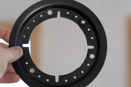 These were the first things I needed, I wanted to design the dish to attach to my Canon 580EX II flash. The ring bracket didn’t have holes big enough for the bolts that I purchased, so we drilled some new ones.